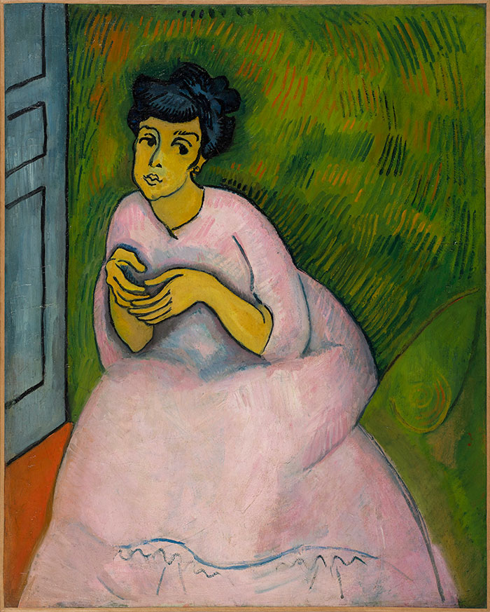 《穿粉色衣服的女士》,1908年,布面油畫,81 × 65 厘米 ? Adagp, Paris Cre?dit photographique ? Centre Pompidou, MNAM-CCI Bertrand Pre?vost Dist. RMN-GP