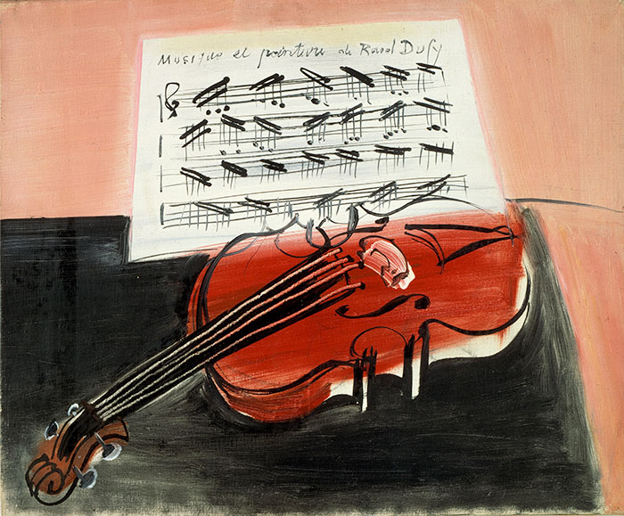 《紅色小提琴》,約1948年,布面油畫,38.5 × 46 厘米 ? Adagp, Paris Cre?dit photographique ? Centre Pompidou, MNAM-CCI Service de la documentation photographique du MNAM Dist. RMN-GP