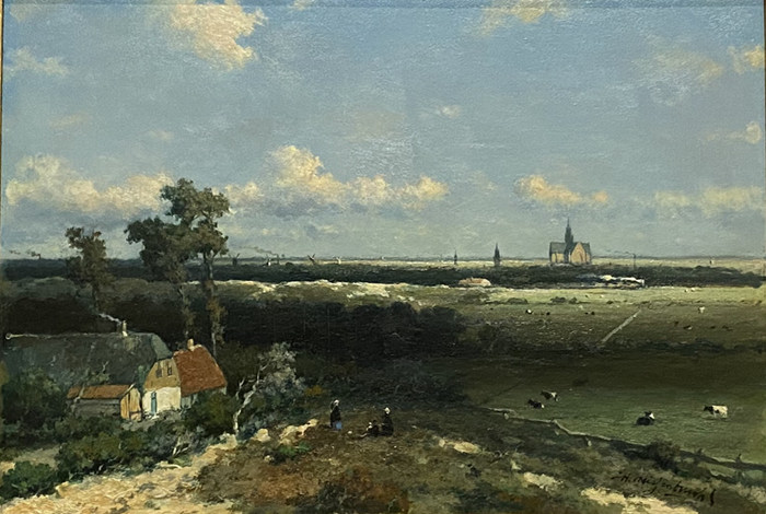 與法國印象派不同,海牙的藝術家們并不十分熱衷于將新時代的技術革新納入畫中,與200年前大師們的作品比對,風景本身似乎沒有太大變化。在海牙畫派代表人物揚·威森布魯赫的畫中要仔細分辨,才能看到若隱若現的煙囪和蒸汽機車混在鄉野之景中。
