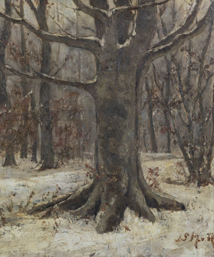 亨德里克·梅斯達格的妻子西娜·梅斯達格-范·侯登也是一名畫家,海牙畫派的風景畫多為夏秋之景,展覽現場展出的西娜之作描繪的則是雪中的山毛櫸樹,其中的樹干也是十分海牙畫派的灰。