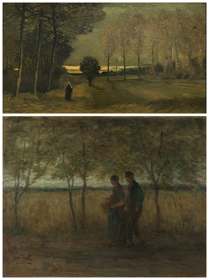 上圖:《夜晚》(Vorabend),文森特·梵高,1885,藏于荷蘭烏德勒支中央博物館;下圖*:《回家》(Turning homewards),約瑟夫·伊斯雷爾(Jozef Isra?ls,1824-1911),1860-1911,藏于荷蘭國立博物館