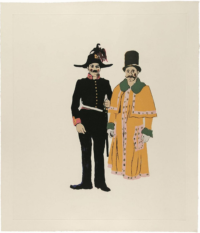 這兩個角色源自多伊格還是藝術系學生時期,他曾在英國國家歌劇院做過七年兼職工作,幫助男子歌劇合唱團演員穿上服裝。有一次演出后,多伊格和一位朋友偷偷穿上戲服和化妝拍了一張照片,多伊格就是拿破侖打扮的人。二十年后,當多伊格開始創作“Gasthof”并尋找兩個人物形象時,他偶然發現了這張照片,這讓他想起了狂歡節上的表演者。之后他在特立尼達感受到有鋼樂隊、“藍色魔鬼”和不間斷的街舞,其狂熱的創造力可與新奧爾良相媲美的狂歡節。