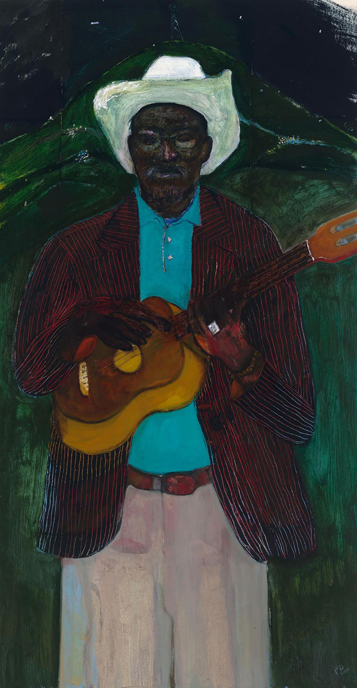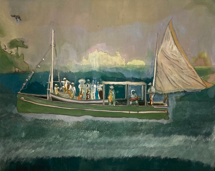 音樂之家(索卡船) 根據一張漁民舉起漁獲的照片,多伊格將這些人描繪成音樂家。