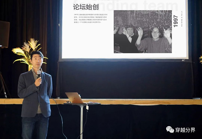 “穿越分界“論壇的輪值主席,來自拉古納藝術與設計學院的遲迅教授,介紹了論壇自2003年以來的發展歷程和主要學術活動。他還分享了自己因受到不同科學范疇內前沿觀念的啟發而創作的攝影系列作品 “神經元與宇宙”,引發了觀眾的興趣和討論。