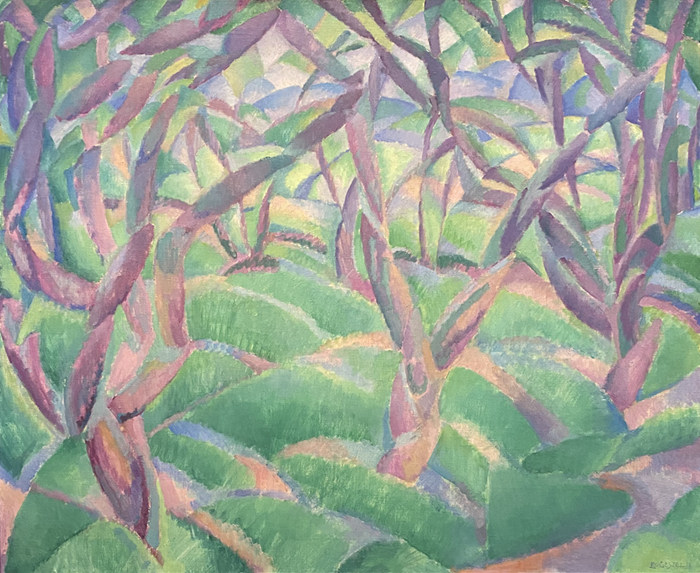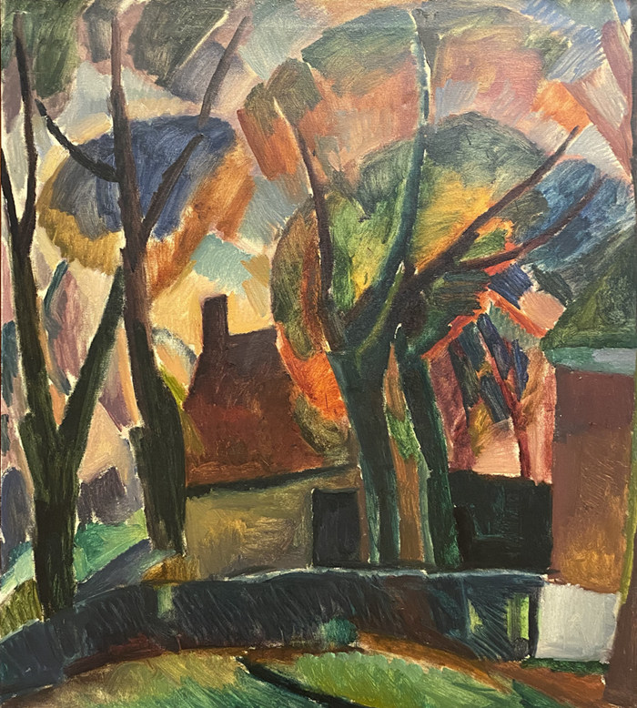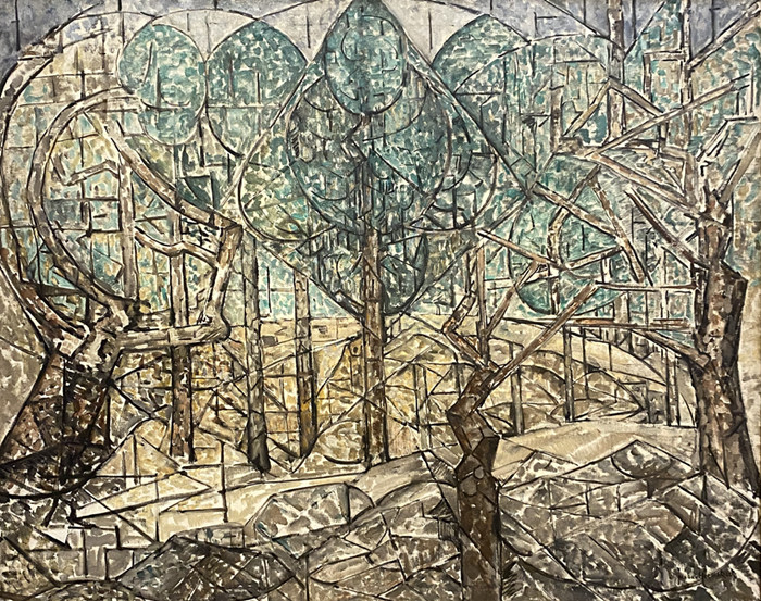 利奧·蓋斯特爾畫下立體主義《果園》的1913年,雅格巴·凡·希姆斯凱克也繪出了立體主義的《林地》,不過畫面兩側樹木彎曲的線條是她未來幾年表現主義的預示,雅格巴并未在立體主義停留太久。