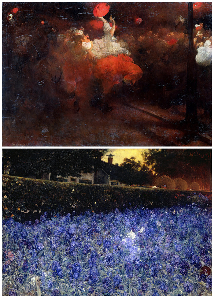 雅各布·凡·盧伊(Jacobus van Looy,1855-1930),上圖:《國王節》(Oranjefest),1890-1892,荷蘭國立博物館藏品(Rijksmuseum Amsterdam);下圖:《七月-夏日繁花》(July-Summer Luxuriance),1900,荷蘭阿姆斯特丹市立博物館藏品(Stedelijk Museum Amsterdam)