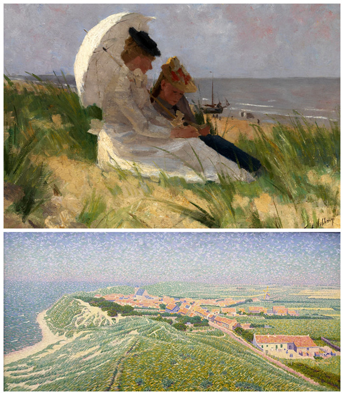 費迪南德·哈特·尼布里希(Ferdinand Hart Nibbrig,1866-1915),上圖:《在贊德弗特的沙丘上》(At the Dunes,Zandvoort),1891/92,荷蘭拉倫辛格博物館藏品(Singer Laren);下圖:《佐特蘭德風光》(View of Zoutelande on the Island of Walcheren),1900-1912,荷蘭國立博物館藏品(Rijksmuseum Amsterdam)