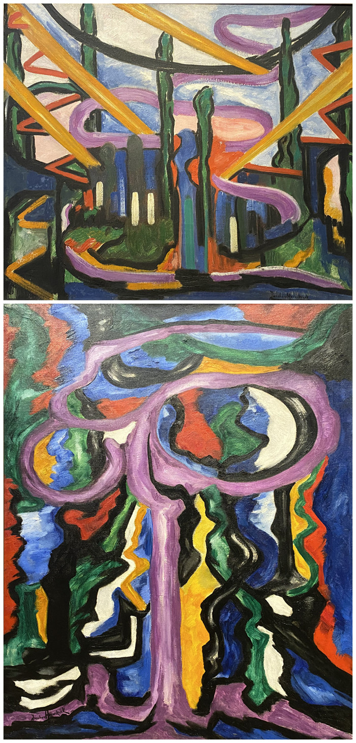 雅格巴·凡·希姆斯凱克(Jacoba van Heemskerck,1876-1923),上圖:《86號組合物》(Composition No.86),1918,荷蘭拉倫辛格博物館藏品(Singer Laren);下圖:《107號組合物》(Composition No.107),1920,荷蘭海牙美術館藏品(Kunstmuseum Den Haag)