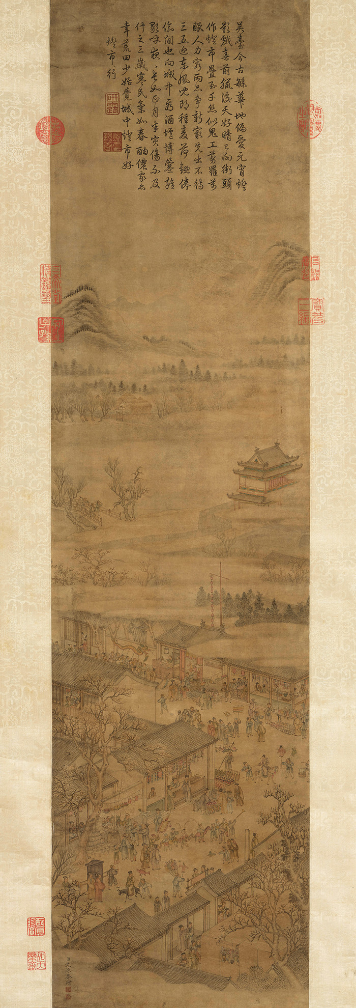 沈源(清) 御題《燈市行》詩意圖 設色紙本立軸 113×29cm 估價:RMB 8,000,000-12,000,000