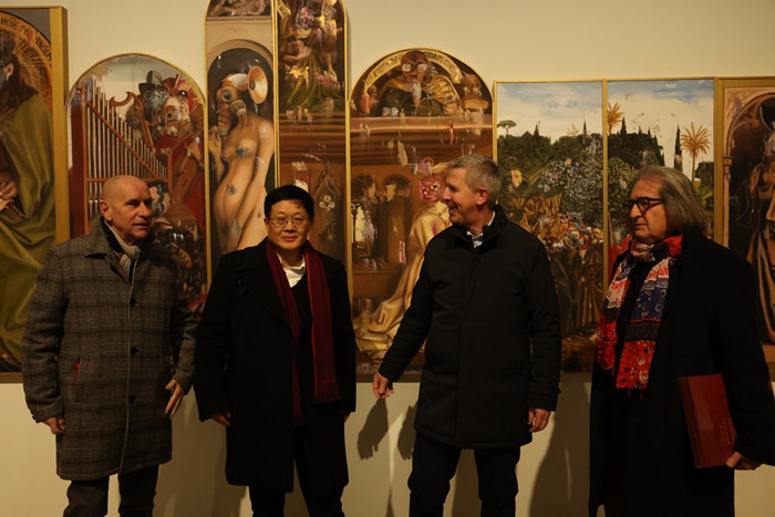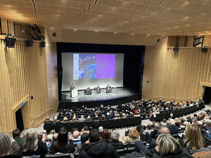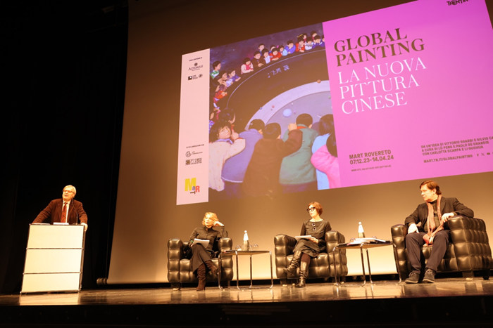 2023年12月6日,“全球性繪畫:中國新一代藝術家”開幕式在意大利特倫托和羅韋雷托現當代藝術博物館(以下簡稱MART)的學術報告廳舉辦。本次展覽展出了來自中國,出生于80、90后的24位青年藝術家的106件繪畫作品。展覽開幕式由意大利文化部副部長、知名藝術理論家、MART美術館館長 Vittorio Sgarbi主持,數百位來自意大利羅馬、米蘭、威尼斯,以及歐洲其他國家,如荷蘭、德國、捷克的觀眾與學術界專家,參加了展覽的開幕式。