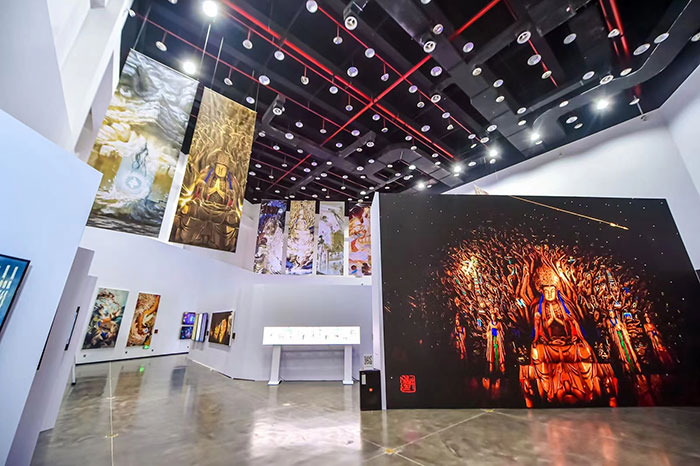 本次展覽共呈現數字交互、單頻影像、數字插畫、虛擬影像等多類型作品共計97件。作品聚焦中國絲綢之路的文化遺產,以大足石刻為起點,探索數字科技語境下絲路遺產表現的“新全景”,建構科技與藝術相融合的“新方法”,力圖充分凝練絲路遺產的歷史價值、文化價值、審美價值與時代價值。