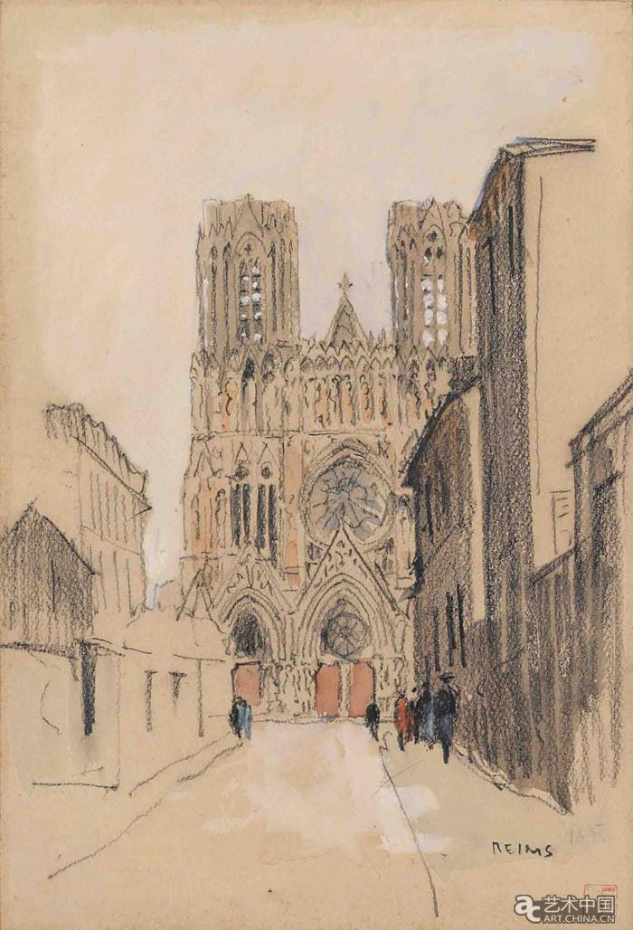 蘭斯,大教堂[法]童寯 1930.5.29 水彩與炭筆 東南大學圖書館