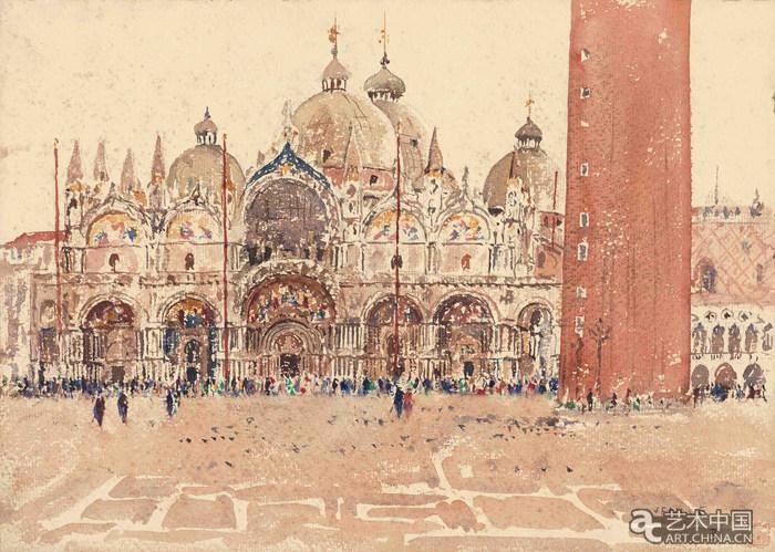 威尼斯,圣馬可廣場[意]童寯 1930.8.8 水彩 東南大學圖書館