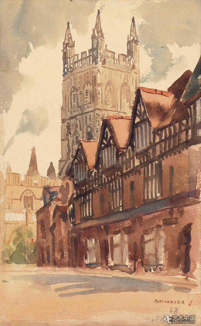 格勞塞斯特,大教堂[英] 童寯 1930.5.4 水彩 東南大學圖書館藏