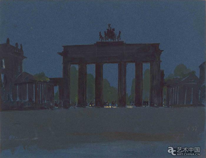 柏林,勃蘭登堡門[德]童寯 1930.7.3 水彩 東南大學圖書館