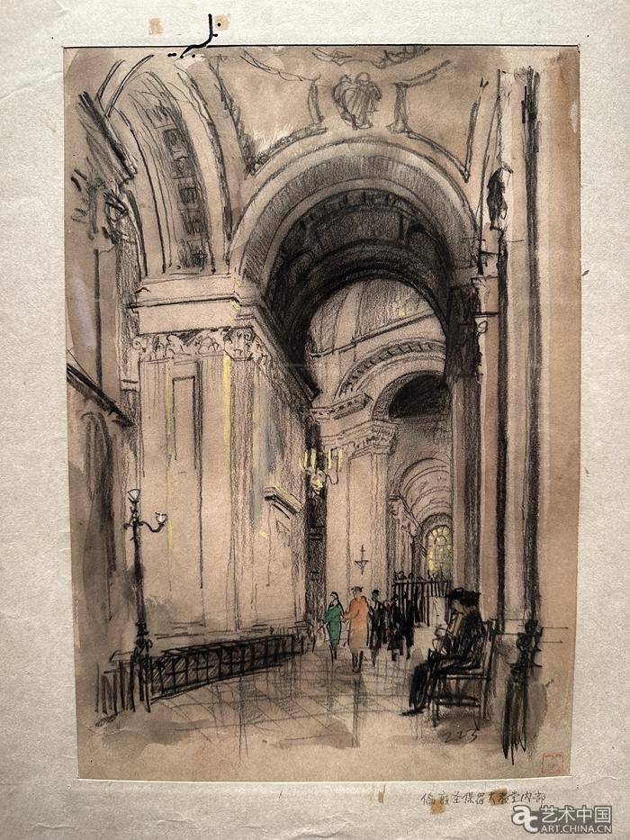 童寯 《倫敦圣保羅大教堂內部》東南大學圖書館藏