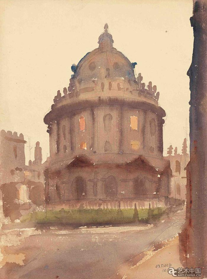 牛津,拉德克利夫圓廳[英] 童寯 1930.5.7 水彩 東南大學圖書館藏