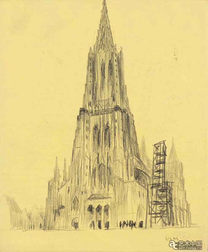烏爾姆,大教堂[德] 童寯 1930.7.27 鉛筆 東南大學圖書館