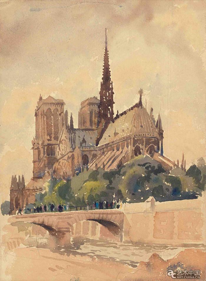 巴黎,巴黎圣母院[法] 童寯 1930.5.23 水彩 東南大學圖書館藏