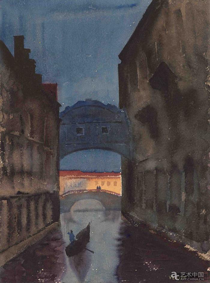 威尼斯,嘆息橋夜景[意] 童寯 1930.8.8 水彩 東南大學圖書館