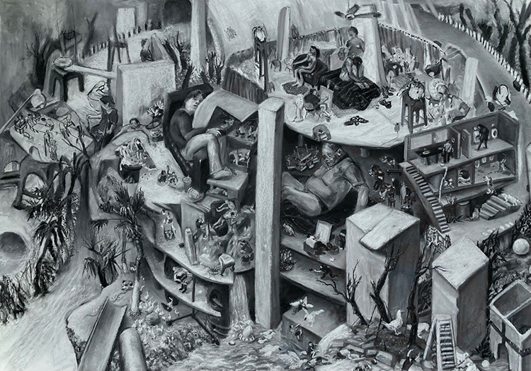 勞家輝 《Y世代-山水2》 72×120 紙本石墨 2023