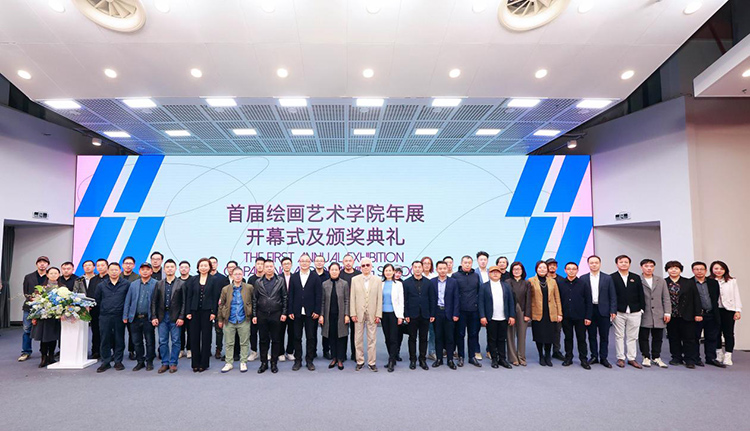 1月12日下午,首屆繪畫藝術學院年展在廣州美術學院大學城校區開幕。廣州美術學院黨委書記林藍,院長范勃,黨委副書記穆林、宋光智,副院長李金水;年展獎捐贈方廣州市大藝文化藝術基金會秘書長王?,?,評委代表藝術與人文學院院長胡斌、藝術家施勇、站臺中國當代藝術機構創始人陳海濤、“和”美術館執行館長邵舒、KennaXu畫廊主理人徐文;老藝術家惲圻蒼,以及廣東省美術家協會專職副主席葉正華,大藝博ONLINE負責人、華藝企業董事長助理陳靜勇,廣州華藝大藝文化藝術發展有限公司(大藝博)作品部經理易梓翔,廣東省文藝評論家協會副秘書長譚暢,廣州畫院畫家劉晟,廣州藝博會總裁彭文斌,廣美校友會油畫系分會會長劉志平,廣東省集美設計工程有限公司副總經理暨版畫系校友分會會長龍偉基,獨立紀錄片導演、藝術家及當代藝術攝影批評家袁園,藝術家與批評家王鵬杰,三域匯藝術空間創始人張委,龍頂藝術創始人郭燕等嘉賓出席開幕式,學校各職能部門負責人、二級學院負責人、師生代表參加了開幕式。