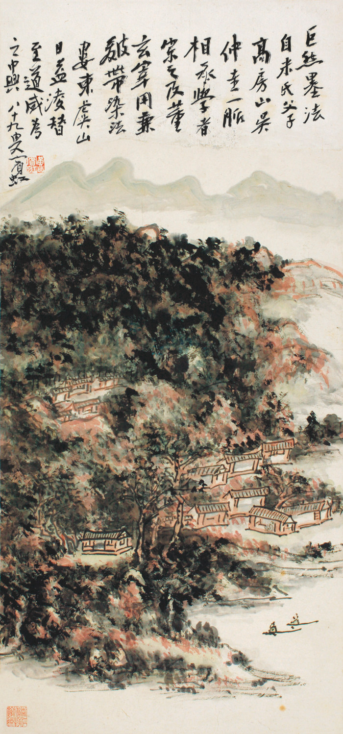 峨嵋詩意 黃賓虹 103cm×40.5cm 1942年 紙本設色 北京畫院藏