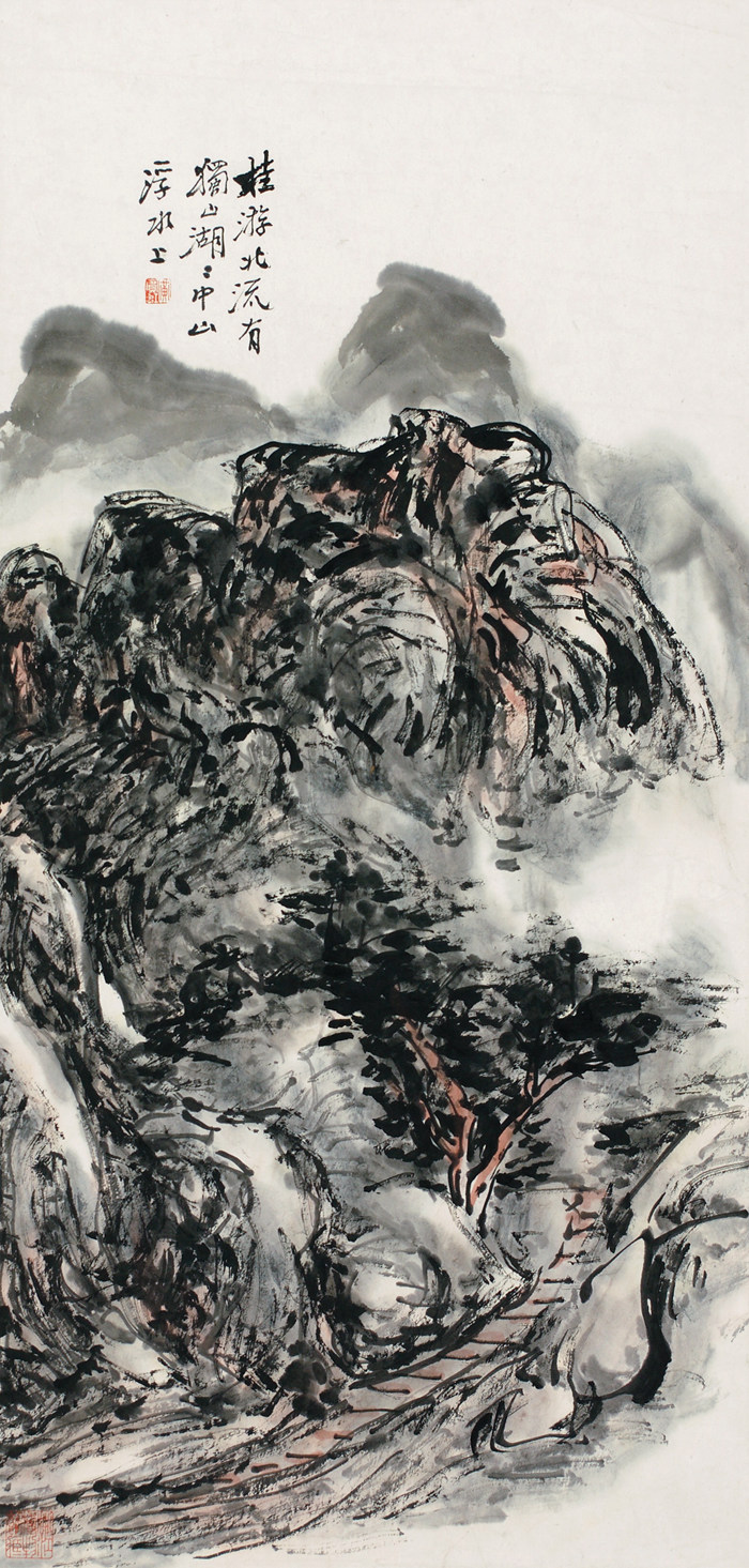 淺絳獨山湖 黃賓虹 62.9cm×29.9cm 無年款 紙本設色 浙江省博物館藏