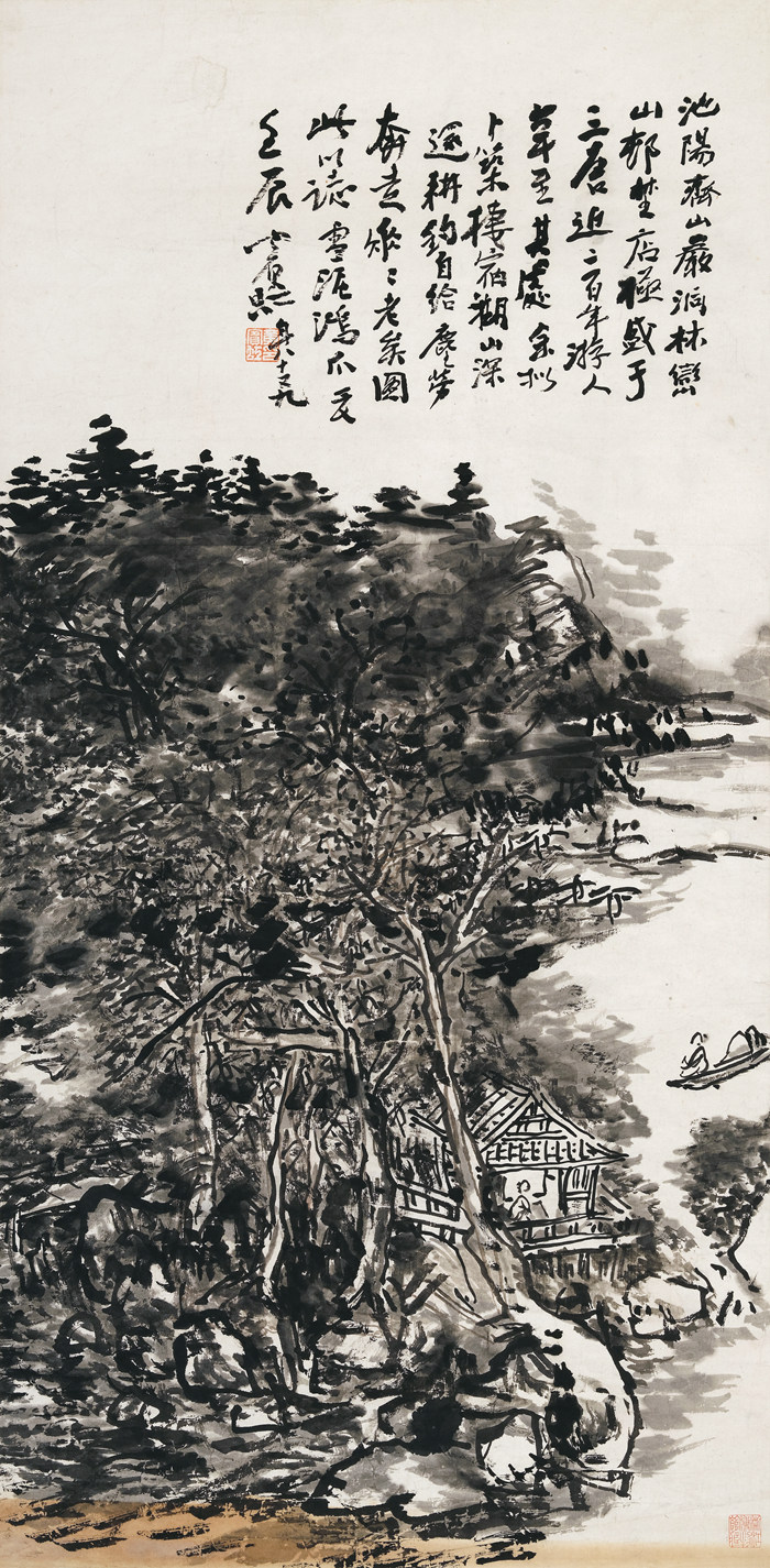 湖山深邃 黃賓虹 91.3cm×45.1cm 1952年 紙本水墨 浙江省博物館藏
