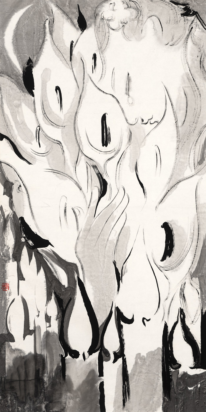中國畫跟書法聯系非常緊,書畫同源,我深有體會。確確實實,書法的氣韻非常像音樂,那種抽象的線性的節奏、韻律,空間里的運動,都帶有一定的時間性。繪畫里也有,它也是在這個活態的運動里,慢慢長出我們所看到的那些跟自然能夠相聯系的形象,這些都是無中生有,這個過程中,空間和時間都是統一的。但是,所有的運動都是在特定的空間內,繪畫的限制是很明確的,在有限的空間內生長出無限的空間,你的畫才能進入經典。造型也是如此,這是統一的。
