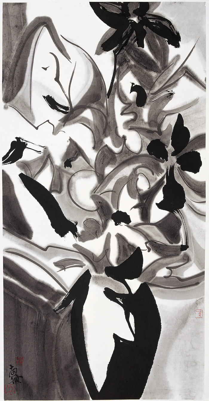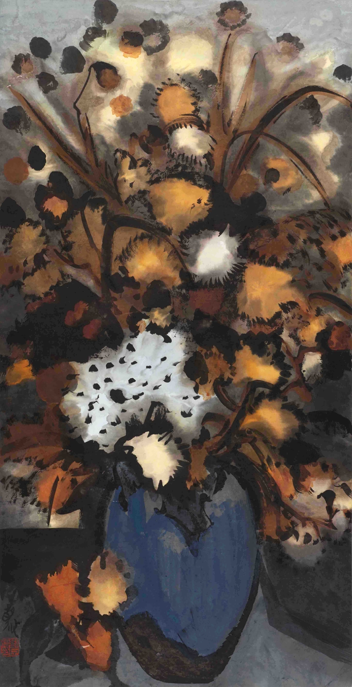 我說的具體一點,我是畫花鳥畫的,桌上有一盆花,按照我們的畫法可能要選擇重點花頭塑造它,重點的塑造好以后,再營造它的氣氛,經過一些渲染等方法處理好畫面的調調,這張畫就畫成了。但是劉先生畫的靜物畫,包括大尺幅的作品,按照劉先生說的,是把重墨先畫一遍,他并不確定花頭一定要在哪個位置,一定要表現哪個是重點,隨著他的深入,會越來越明確,可能到最后他沒從那個花頭開始畫,但最后那幾個花頭都會很鮮亮得也都出來了。