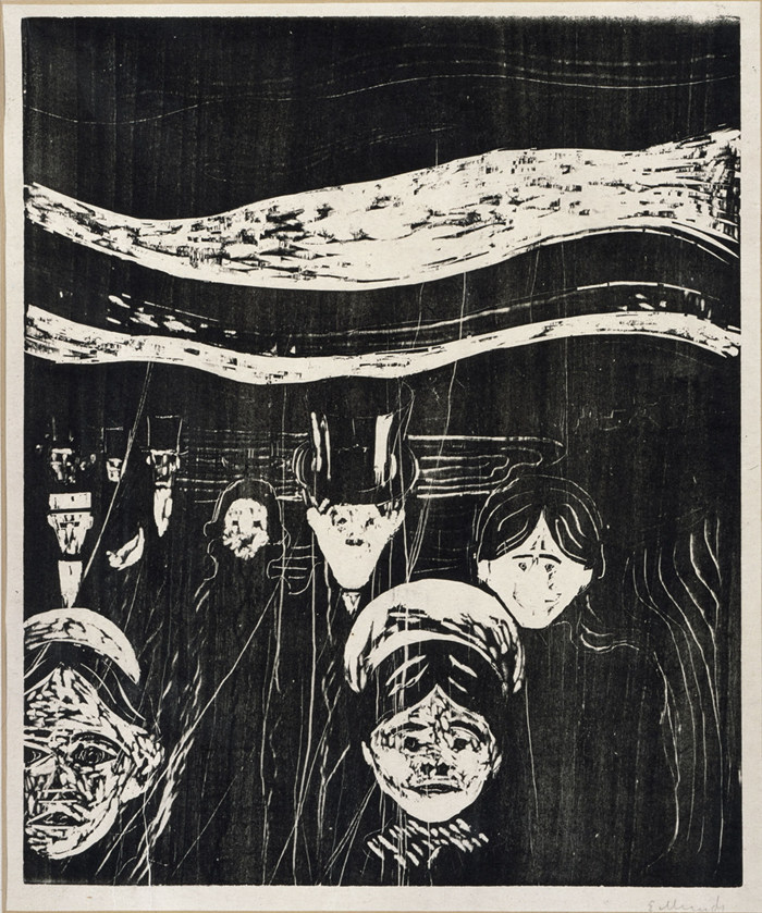 《焦慮》,蒙克,木刻版畫,1896,柏林國家博物館之版畫素描博物館藏品
