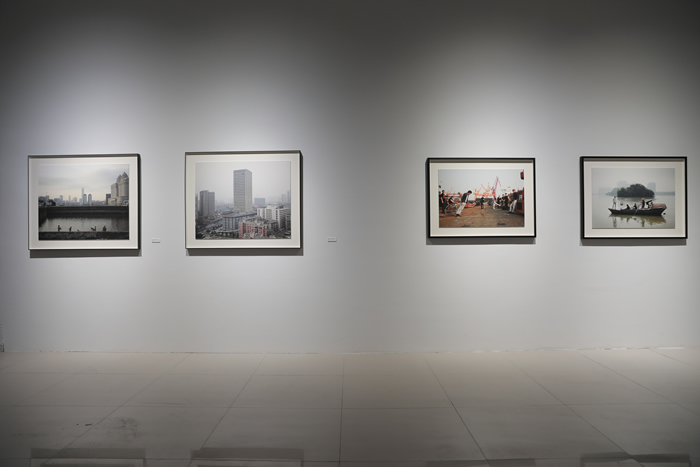 從左至右:曾翰《超真實風景,廣州新港西路》(2004),曾翰《超真實風景,廣州珠江新城》(2006),嚴明《在碼頭》(2020),嚴明《在碼頭》(2020),詩山河·陸之舟,攝影:三金