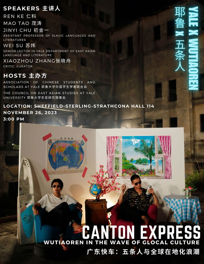 五條人在耶魯大學講座“廣東快車:五條人與全球在地化浪潮”,2023年11月