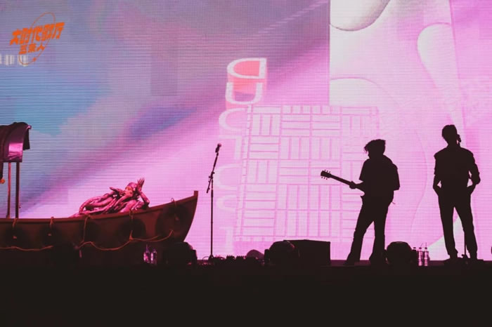 藝術中國:“大時代歌廳”廣州演唱會堪稱一場搖滾樂與當代藝術的視聽盛宴,曹斐作為藝術導演的加盟,讓這場演唱會的視覺效果與音樂表達非常契合,您怎么看五條人與曹斐的聯合合作,他們的異同點在哪里?