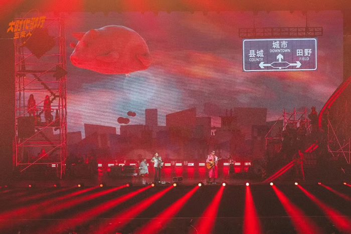 當然,它也像建筑工地,而曹斐在大時代歌廳廣州演唱會舞臺上,也設置了建筑工地場景,搭建了竹棚架。