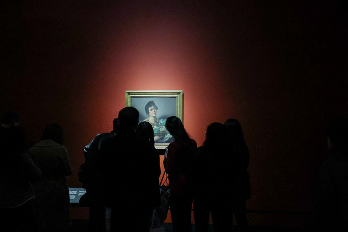 觀眾觀看《捧果籃的男孩》,浦東美術館,2023