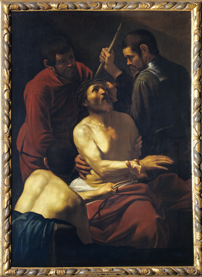 《荊棘王冠》 卡拉瓦喬(米開朗基羅·梅里西) 1602-1603年 布面油畫, 178 x 125 cm 普拉托市維琴察銀行收藏