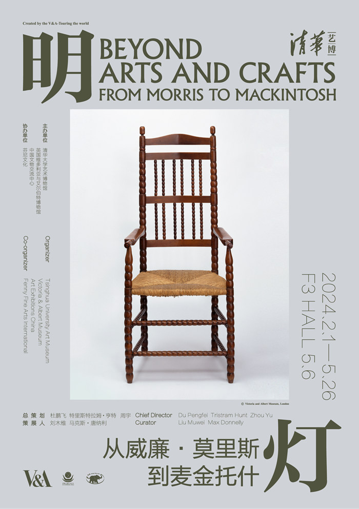2024年2月5日,“明燈:從威廉·莫里斯到麥金托什”特展在清華大學藝術博物館開啟。“明燈:從威廉·莫里斯到麥金托什”特展分為“開卷有藝”“紋藝青年”“飾藝向心”“藝美之瓷”“藝味其從”“現代建藝”六個展區,以英國維多利亞與艾爾伯特博物館和清華大學藝術博物館等機構和藏家的共計近200件展品為基礎,展現了以工藝美術運動為核心發展階段的書籍裝幀、插畫藝術、家居染織、金屬工藝、陶瓷裝飾、建筑設計等領域的成就。