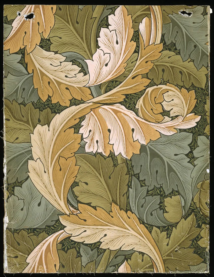 茛苕(壁紙)設計:威廉·莫里斯 印刷:杰弗里公司 發表:莫里斯公司1875年 紙本膠質顏料,木版印刷68cm×52.3cm維多利亞與艾爾伯特博物館藏 莫里斯公司捐贈