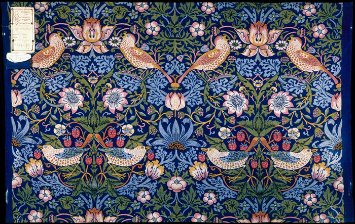草莓小偷(家居紡織物)設計:威廉·莫里斯 生產:莫里斯公司 1883年 拔染印花棉 60.5cm×95.2cm 維多利亞與艾爾伯特博物館藏 莫里斯公司捐贈