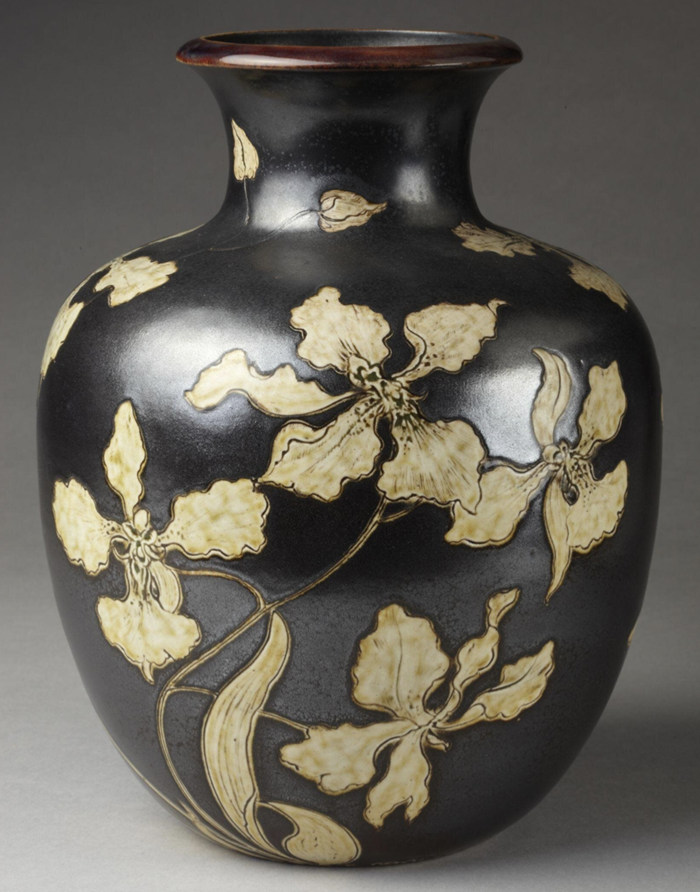 蘭花鹽釉花瓶 設計師/制造商:R.W.馬丁兄弟 倫敦,1899年 鹽釉炻器 26.4×20.5 cm 維多利亞與艾爾伯特博物館藏 弗朗西斯·貝德福德·馬什少尉 捐贈