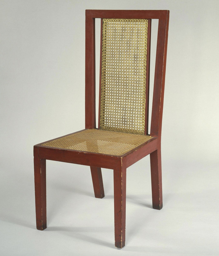 歐米茄椅 設計:羅杰·弗萊 經銷:歐米茄工坊 制造商:德萊德公司,萊斯特 1913-1919年 涂漆松木,鍍金藤條 110cm×51cm×56cm 維多利亞與艾爾伯特博物館藏 瑪麗安·羅德克捐贈