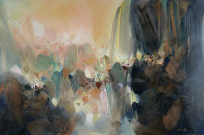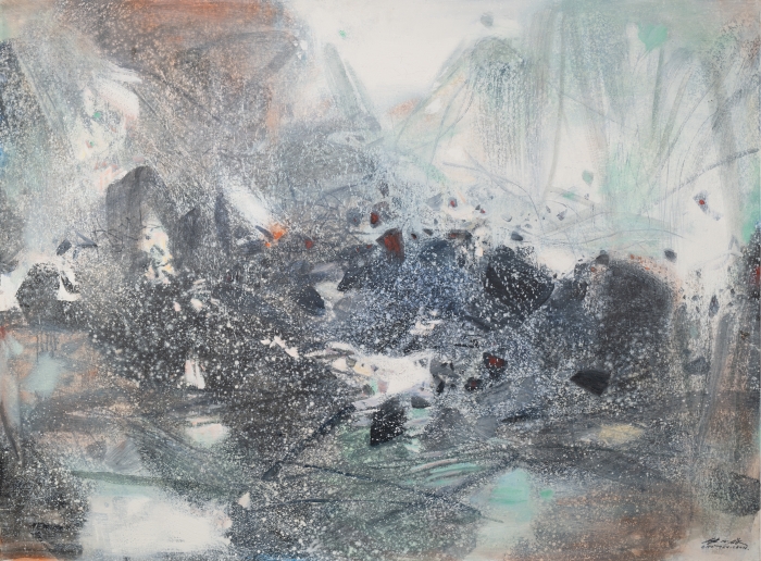 為了更好地理解他的作品,我們需要探索他的繪畫語言(古典與現代、中國與西方)的來源,以及他對自然和風景的記憶感、動態本質的理解和對光的表現轉換能力。朱德群的抽象的是由生命和景觀的有機邏輯所支撐的,是由自然現象的變化所支撐的,在火山爆發、閃電、風暴、水流和其他宇宙演化之間。