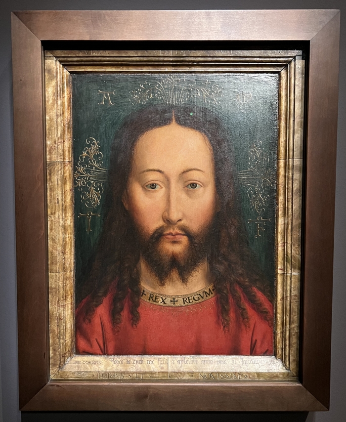 除了以上5幅肖像外,特展現場還有一幅宗教畫其實也算是“肖像”,主角是耶穌。這幅畫遵循了中世紀盛期常見的圣像類型,風格上也很接近揚?凡?艾克的作品,上面甚至還有他的簽名和日期,但據研究結果顯示,這幅作品是在揚?凡?艾克離世60多年后完成的。