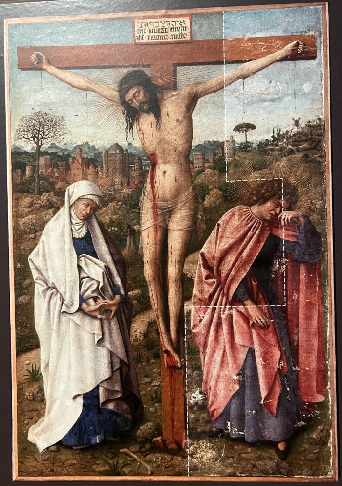 與揚?凡?艾克的板面油畫相比,修護完工依舊無法掩蓋《耶穌受難》這幅布面油畫“羸弱”的狀況,不過修護前后的對比依舊是顯而易見的。只能說,確實盡力了。