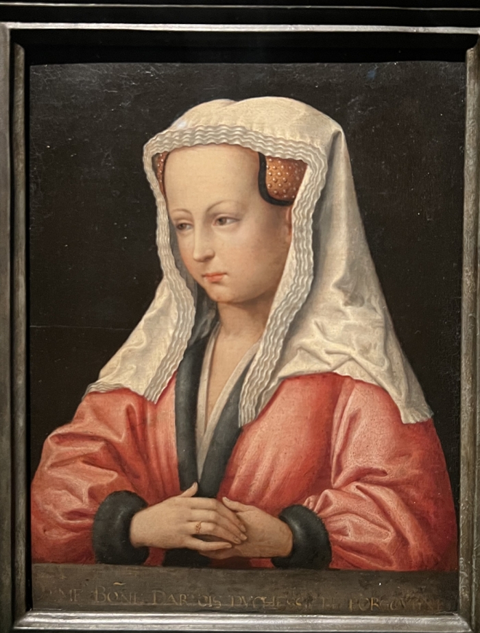 《邦妮·達圖瓦》(Bonne d'Artois,1396-1425),佚名,16世紀下半葉,板面油畫,拍攝于特展現場