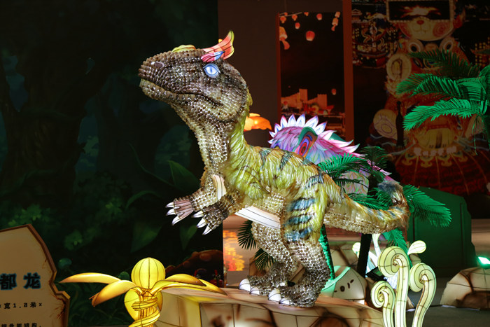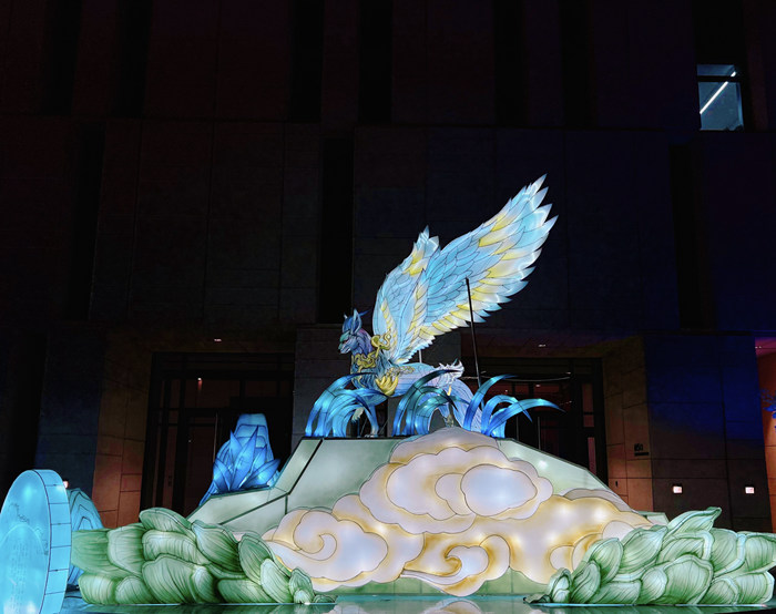自貢燈彩的藝術魅力在于其絢麗多彩的視覺效果和深厚的文化內涵。工匠們將傳統制作技藝與現代科學技術相結合,創作出既有傳統美感又富含現代創意的燈彩藝術品。這些燈彩作品不僅展示了中國傳統文化的精髓,也體現了人們對美好生活的向往和祝福。本次燈彩會的主題內容豐富多樣,涵蓋了龍年生肖、《山海經》、自貢恐龍等創意燈彩主題。每一個燈彩作品都是工匠智慧和創造力的結晶,通過燈光的變幻莫測,展現了中國古代神話、傳說中的奇幻場景和神獸形象,讓觀眾仿佛置身于一個光影交織的夢幻世界。