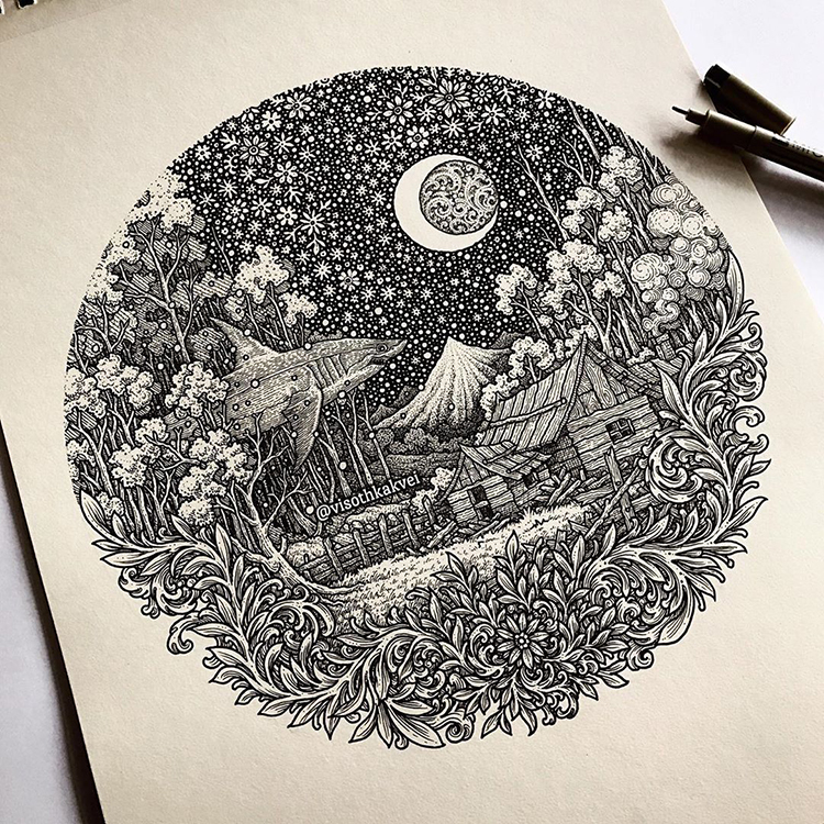 關于針管筆作畫,小編已在上一期分享過一位大神:Maxwell Tilse(傳送門:一支針管筆能畫出什么(一)),本期小編繼續為大家介紹使用普通針管筆畫出逆天作品的其他藝術家。