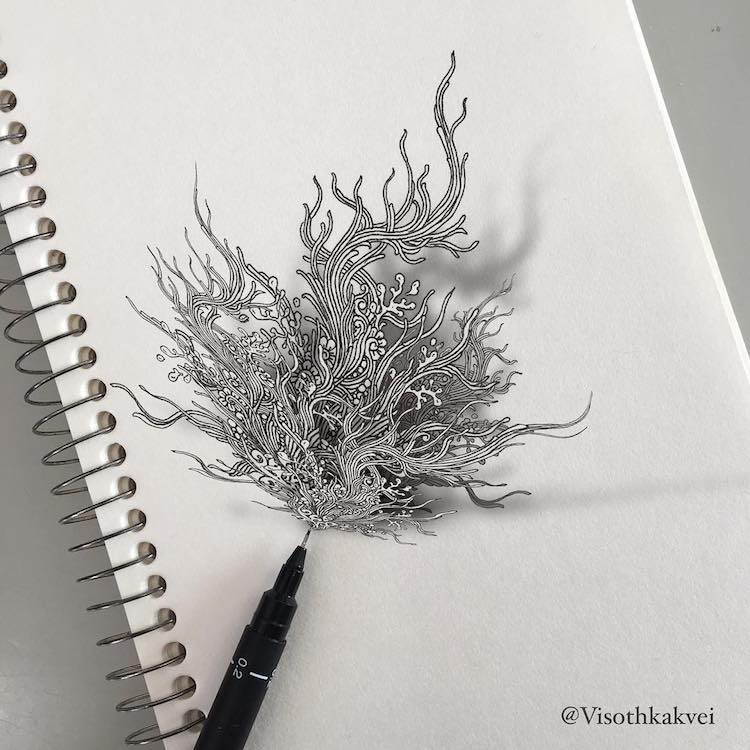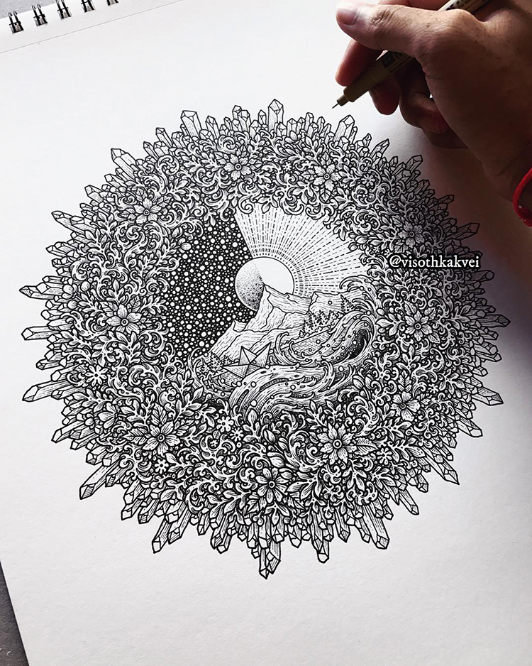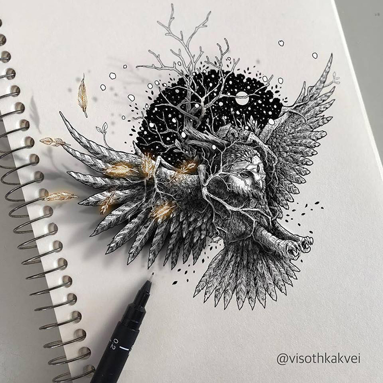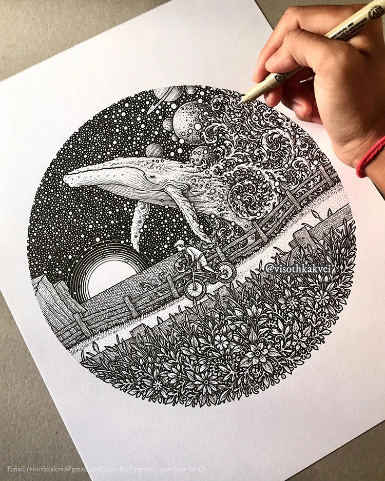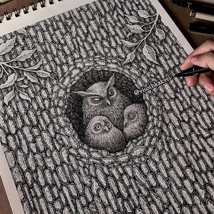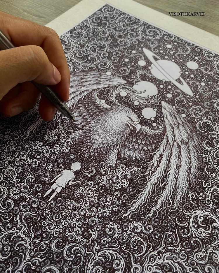 天分+努力,Visoth Kakvei在針管筆繪畫上不斷創新、突破限制,誰知道他下一步又會畫出哪些驚艷的作品呢?(撰文_ 蘭紅超,圖片來源于網絡)